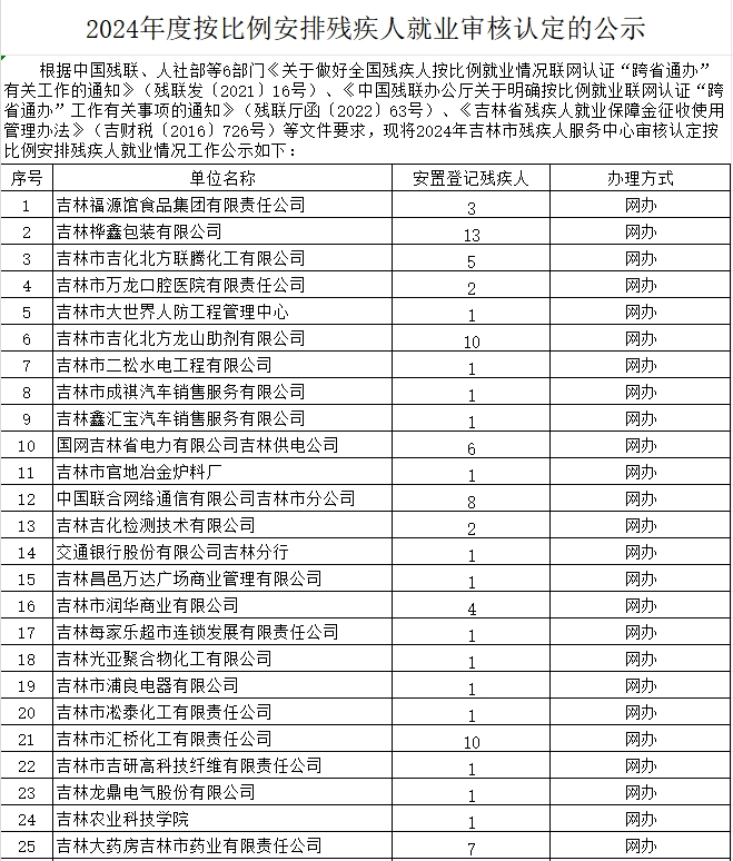 2024年按比例安排残疾人就业审核认定公示 |