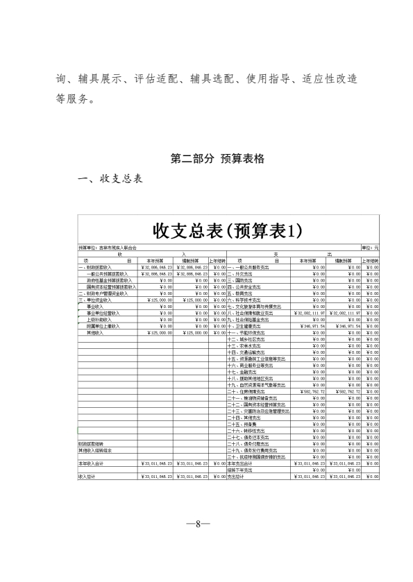 2025年度吉林市残疾人联合会部门预算 |